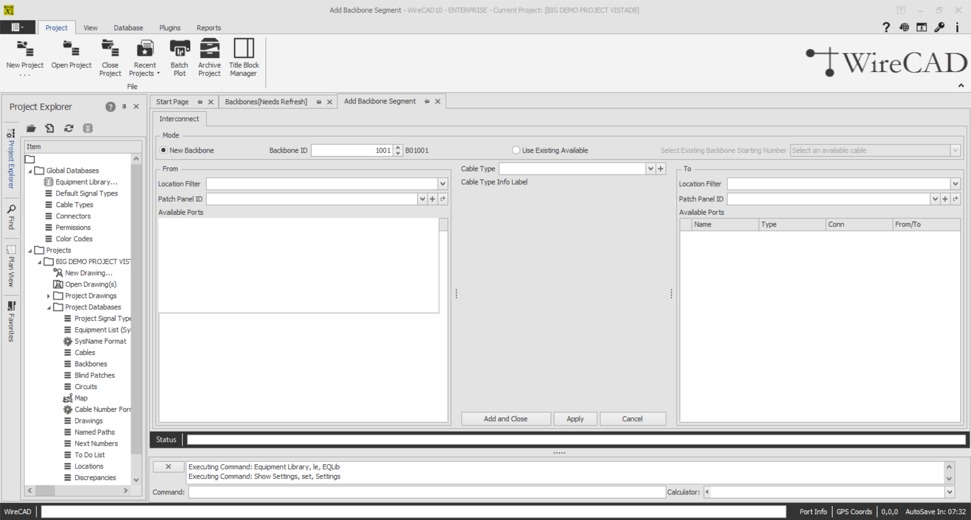 17.Click [Apply]. WireCAD will create this backbone and then revert to an empty page ready for another backbone assignment.
