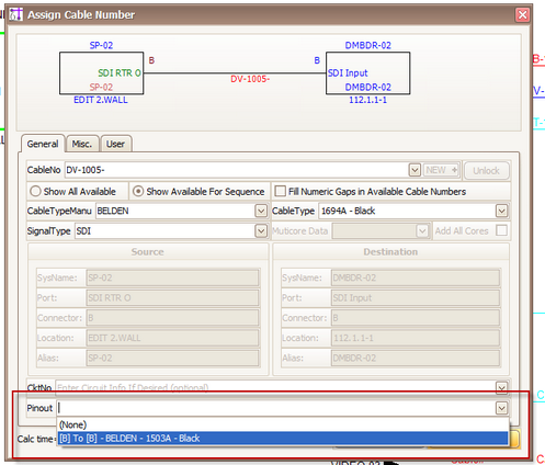 Set to true to allow attachment of pinout data to each cable. You must display the Edit Cable Data dialog in order to pick the pinout. Pinouts are set using the Pinouts plugin. Once defined, during a cable number assignment you can pick from pinouts that have the proper connectors defined. If the proper connectors, both src and dst, do not exist in the pinout it will not be available for choice.