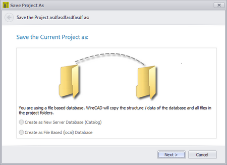 This tool allows you to save a project as a new name in a new location. SQL projects may be saved as new SQL databases or file based databases. A File Based database may only be saved as a file based database.
