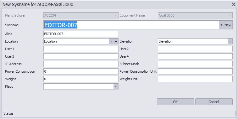 •SysName - This is our unique-by-location id. If you manually enter a SysName it must follow the format defined in the SysName Format tool. The SysName textbox will be masked to help you follow the format.