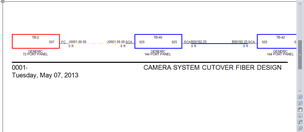 Displays a CAD representation of the circuit as a functional block diagram. The master source and destination are show with a series of equipment panels, jumpers, and backbones.