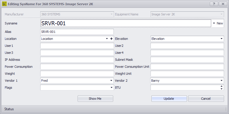 •Vendor 1 / Vendor 2 - Pulled from the global Equipment definition or typed manually here.