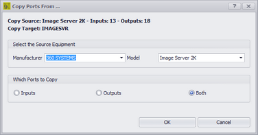Allows you to copy port data from another device definition into the currently selected device definition.