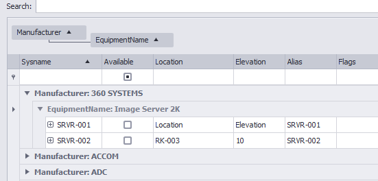 •Grid Searching - Enter your search text in the Search box and click [Search]. WireCAD will search all fields in the table for the search term. The % character is the wild card.