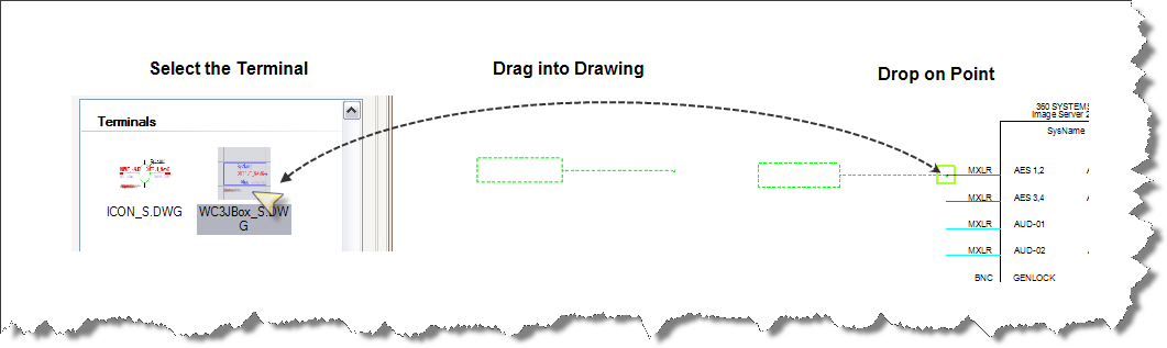 4.Click the item in the gallery that you wish to place. This will add it to the drawing for placement including the attaching cable.