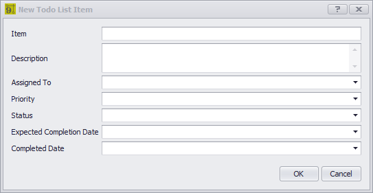 Create a new Todo List item. When launched from the following grids it will associate the Todo List item with the selected record(s):