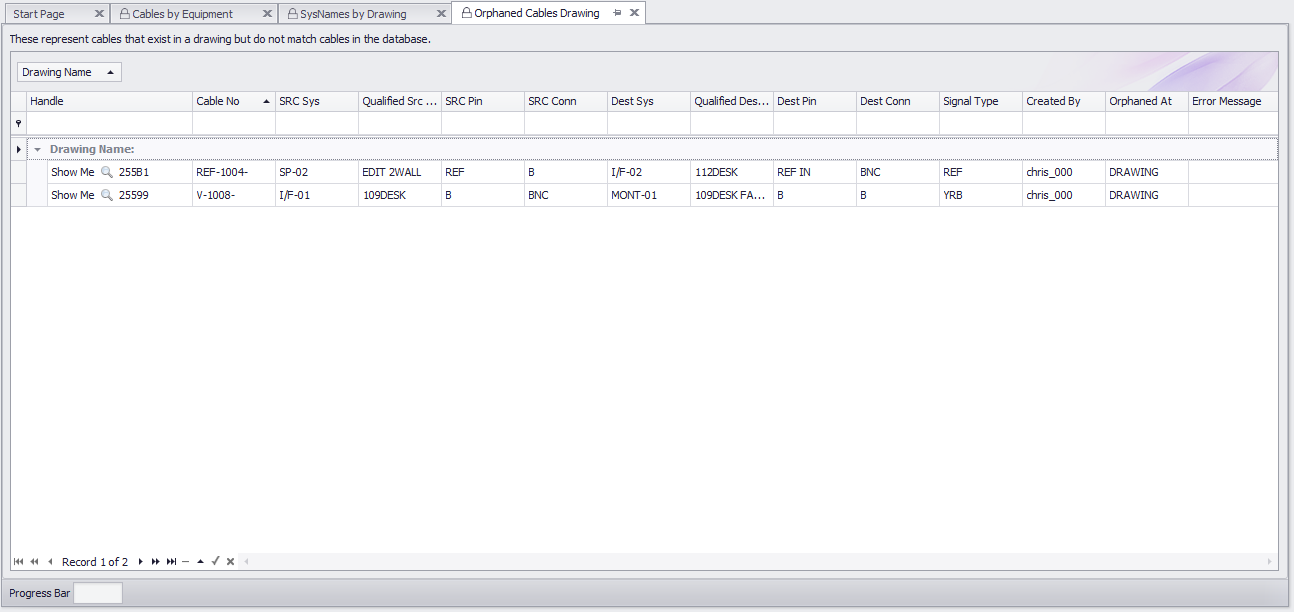 Any Cable with a number but no corresponding entry in the Cables database will be added to this index by drawing.